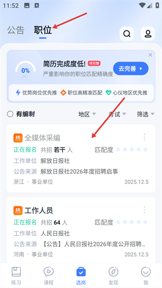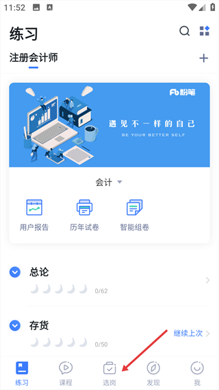 1、點擊底部的“選崗”按鈕,切換至選崗頁面。