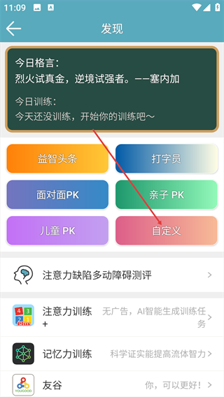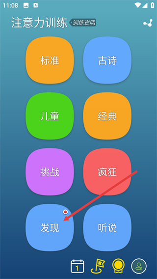 1、在【注意力訓練】頁面,點擊【發現】功能按鈕。