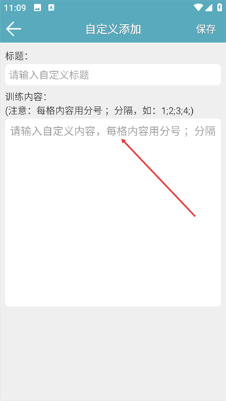 4、按要求在【標題】和【訓練內容】欄填寫內容,自定義訓練方法。