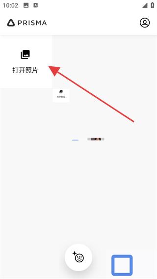 1、打開Prisma軟件,點擊【打開照片】,從手機相冊中選中需要編輯的圖片。