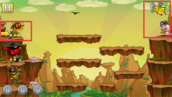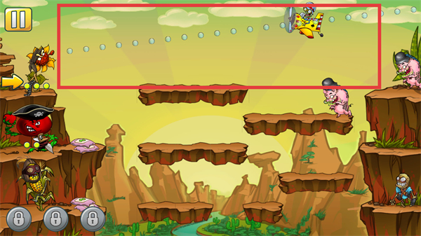3、僵尸飛機(jī)會(huì)投放敵人,得盯著它的軌跡,等敵人落地后,用已有的植物攻擊,別讓敵人靠近資源植物哦。