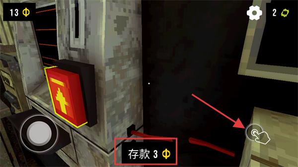 3、移動到紅色按鈕區域,點擊手勢圖標完成【存款-3-Φ】的操作,推進游戲流程。