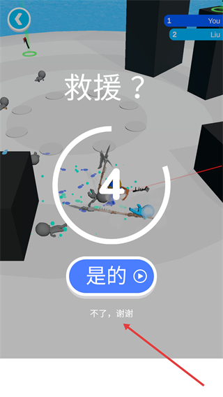2、操控藍色小人沿【紅色箭頭】發(fā)起攻擊,對抗對手。