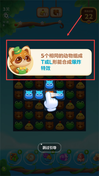 1、游戲中五個(gè)相同動(dòng)物組成T或L形可合成爆炸特效,合理布局能觸發(fā)特效助力消除關(guān)卡障礙推進(jìn)進(jìn)度。