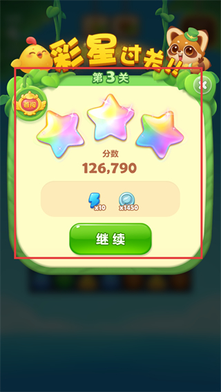 4、過關(guān)后獲得彩星評(píng)價(jià)及高分獎(jiǎng)勵(lì),積累分?jǐn)?shù)解鎖更多關(guān)卡體驗(yàn)更豐富的消除挑戰(zhàn)樂趣。