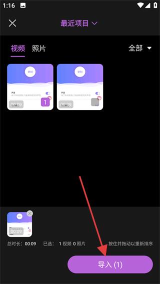 2、在界面中勾選目標(biāo)視頻,點(diǎn)擊【導(dǎo)入(1)】按鈕,進(jìn)入視頻編輯頁面。