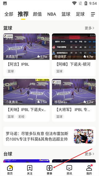 1、點擊底部【賽事】選項,即可進入賽事頁面。