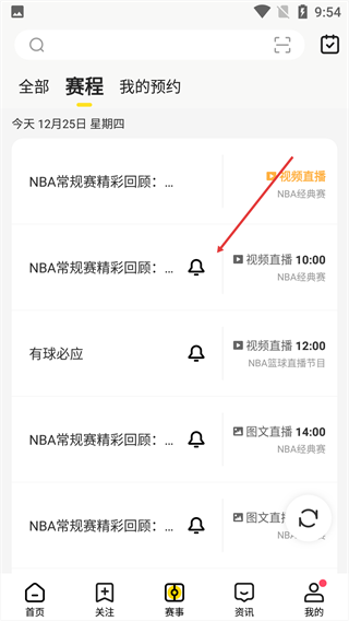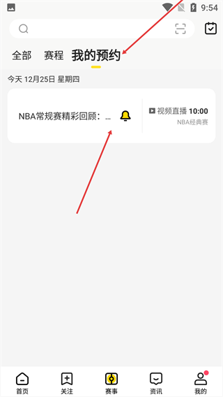 4、完成預約后,切換至賽事頁面的【我的預約】標簽,可查看已預約的賽事。