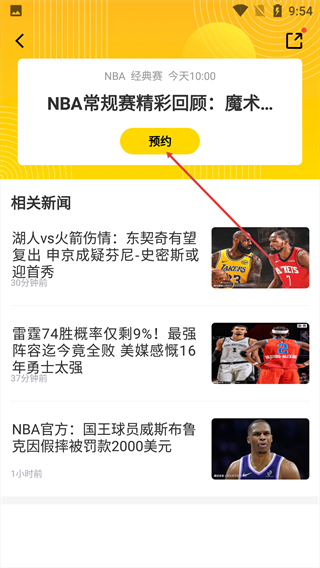 3、點擊頁面中的【預約】按鈕,即可完成該賽事直播的預約操作。