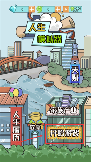 1、進入【人生模擬器】主界面,點擊【開始游戲】按鈕,開啟人生旅程,可查看【人生履歷】與【成就】系統。