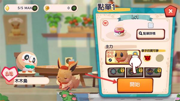 2、在點餐界面確認主力寶可夢后,點擊【開始】按鈕,進入對應的消除關卡。