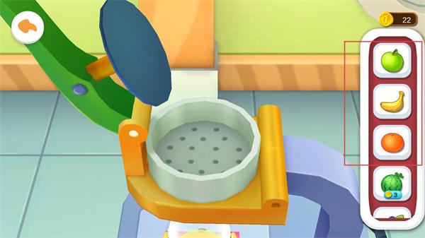 2、在右側(cè)食材欄選擇【蘋果】【香蕉】等水果,準備將選中的食材投入對應(yīng)的加工容器中。