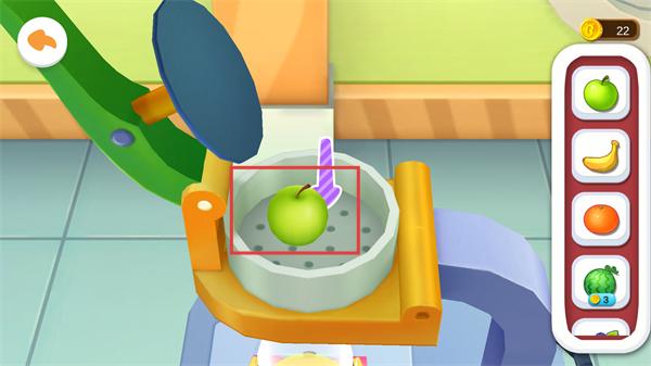 3、將選中的【蘋果】食材放入加工容器內(nèi),為果汁制作準備水果原料。