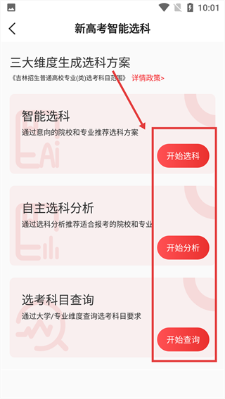 1、在首頁功能區找到【選科助手】按鈕點擊,進入智能選科板塊。