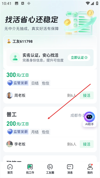 5、提供個人信息完善與實名認證服務,不僅提升賬號安全性,還能增強與班組、項目方的信任度,促進合作順暢。