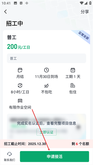 3、在崗位詳情頁面,點擊底部的【申請接活】按鈕。