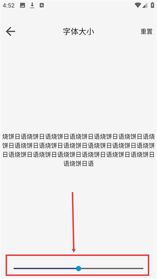 4、進(jìn)入【字體大小】調(diào)整界面后,拖動(dòng)下方的滑塊,即可調(diào)整文字顯示大小,按需設(shè)置閱讀舒適度。