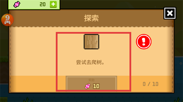 2、在探索窗口中,查看嘗試去爬樹務(wù),完成獲得10糖果。
