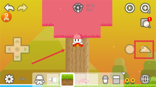 4、操控角色移動到樹干處,點擊跳躍爬上樹完成任務(wù)。