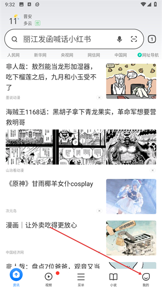 1、打開360瀏覽器資訊頁面,點擊底部導航欄中的我的選項進入對應頁面。