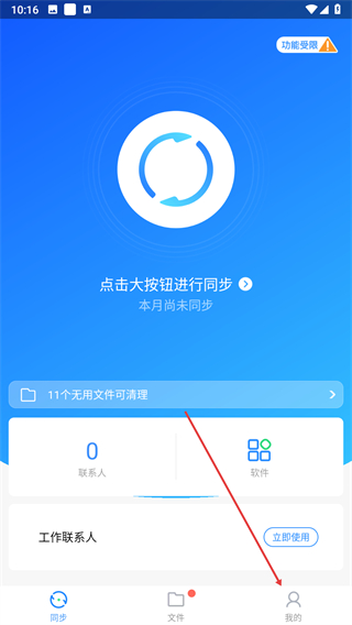 1、打開QQ同步助手同步頁面,點擊底部導航欄我的選項進入個人頁面。
