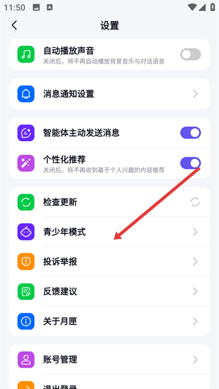 3、在【設置】頁面中,找到并點擊【青少年模式】選項。