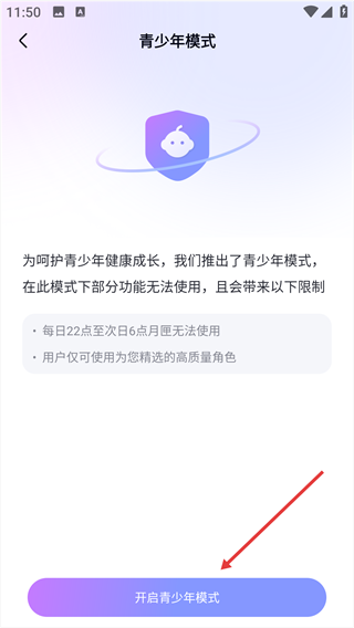 4、點擊底部的【開啟青少年模式】按鈕,即可開啟該模式。