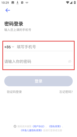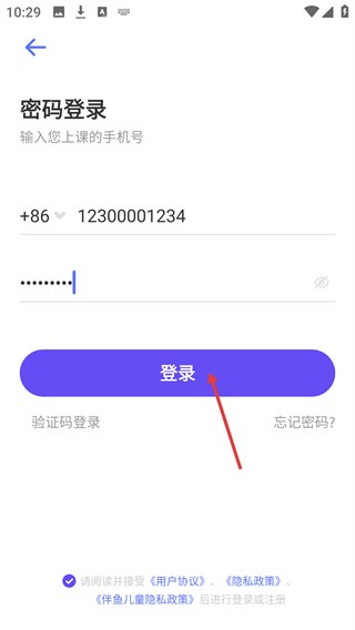 4、填好手機(jī)號和密碼,且確認(rèn)已接受相關(guān)協(xié)議后,點(diǎn)擊【登錄】按鈕即可完成該軟件的登錄操作。