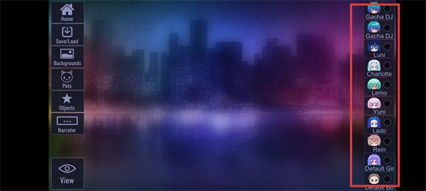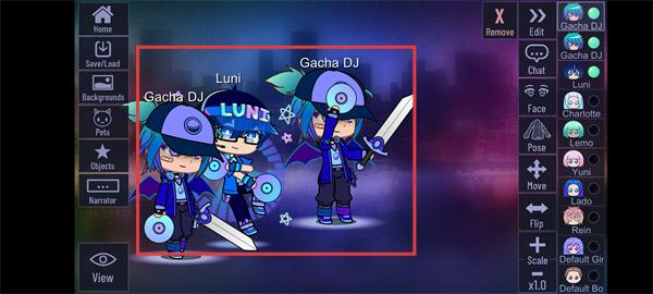 1、在角色列表中選擇【Gacha-DJ】等角色,將其添加到場景中,開啟場景編輯玩法。
