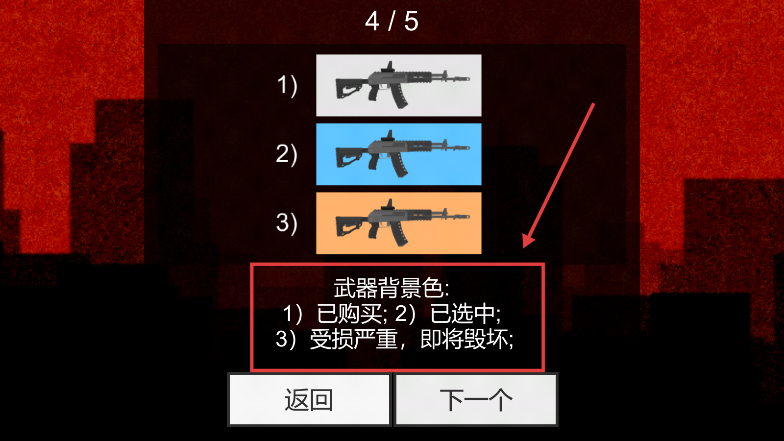 2、根據(jù)武器背景色判斷狀態(tài),已選中的武器優(yōu)先使用,受損嚴重的及時替換避免失效。