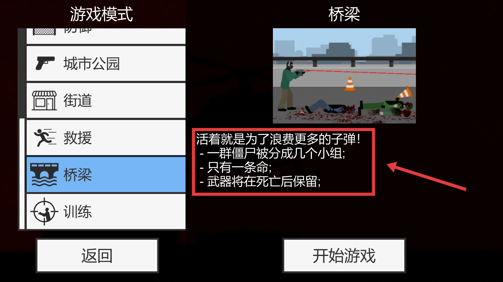3、選擇橋梁模式時注意只有一條命,武器死亡后保留,需合理規(guī)劃彈藥和攻擊節(jié)奏。