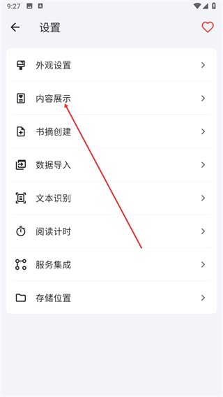 2、在設置頁面里,找到內容展示選項點擊該選項,進入對應設置界面。