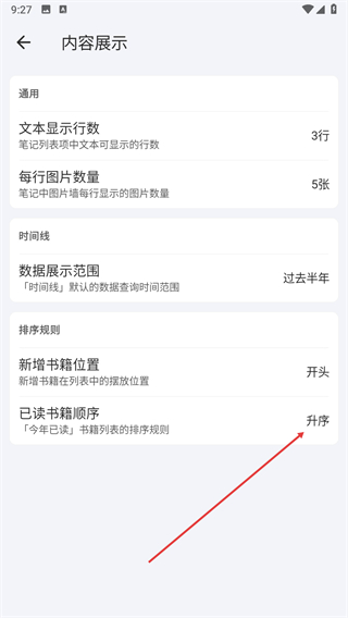 3、進入內容展示界面后,找到排序規則板塊中的已讀書籍順序選項。