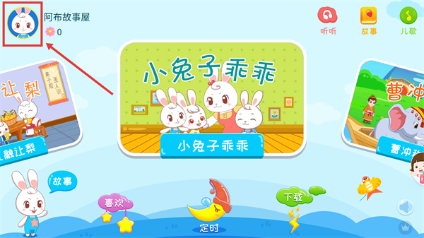 1、在【阿布故事屋】界面,點擊左上角的頭像框,進入該頁面。