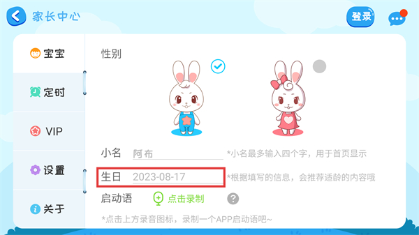 3、進入【家長中心】的【寶寶】頁面,按提示點擊【生日】。