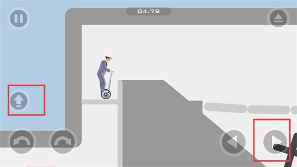 2、遇到平臺(tái)缺口時(shí),按【向上按鈕】和向右按鈕】向上跳移動(dòng)角色,跨越缺口保持平衡車穩(wěn)定。