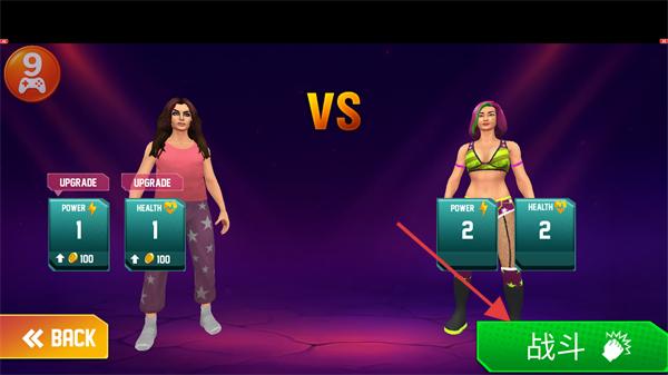 1、在對戰準備界面,可消耗金幣升級角色的“POWER”(力量)或“HEALTH”(生命值),點擊【戰斗】進入比賽。