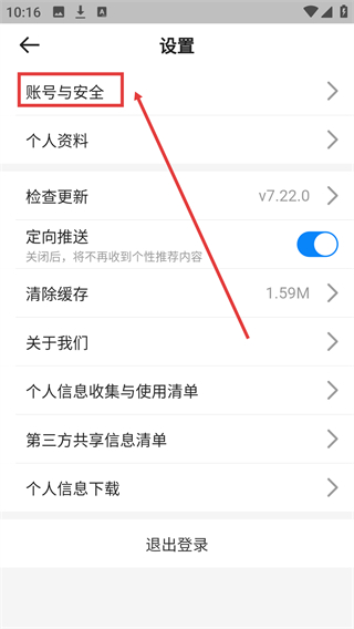 3、在【設置】頁面中,選擇【賬號與安全】選項并點擊,可進入賬號安全相關的設置界面。