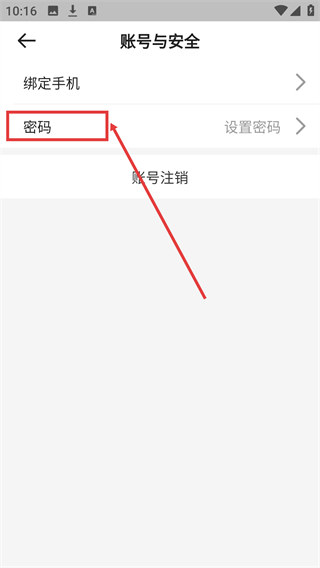4、進入【賬號與安全】頁面,找到【密碼】選項,點擊可進行賬號密碼的設置操作。