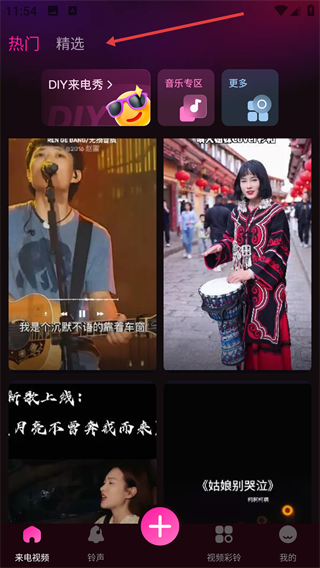 1、在來電視頻頁面頂部,點擊【精選】標簽,切換至精選分類下的視頻內容列表。