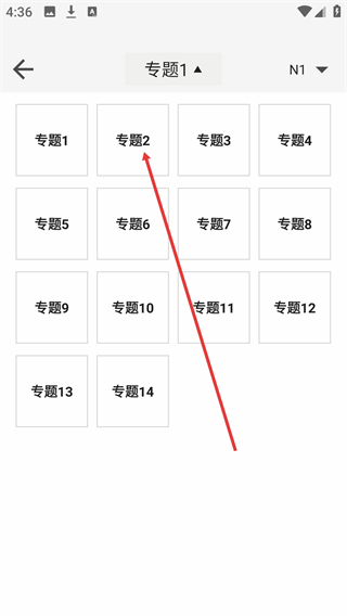 3、在展開的專題選擇列表中,找到【專題2】選項并點擊,即可切換至該專題對應的題目列表界面。
