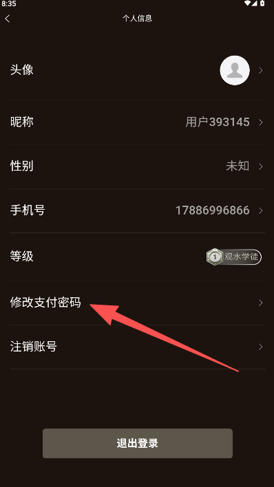 2、在個人信息頁面找到并點(diǎn)擊“修改支付密碼”選項進(jìn)入重置流程。