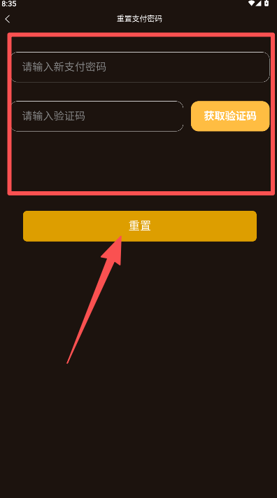 3、在重置界面輸入新密碼與短信驗證碼后點(diǎn)擊“重置”完成。