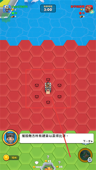 2、明確目標為摧毀敵方所有建築,觀察敵方陣型分布,規劃進攻路線以贏取比賽。
