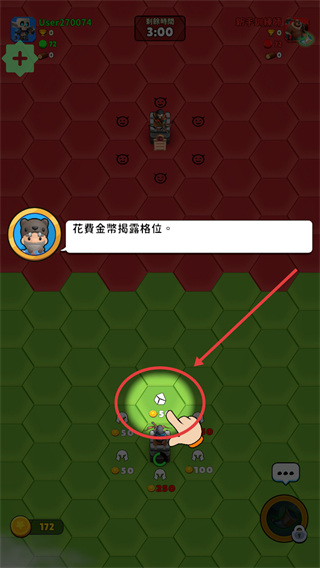 1、點擊高亮格位消耗【5-金幣】揭露內容,解鎖新區域或資源,推進游戲進程。