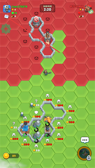 3、操控單位佔領綠色區域,獲取【金幣】資源,同時攻擊敵方防禦建築,擴大優勢。
