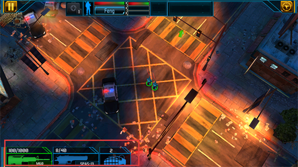 1、進入場景后,操控角色靠近【警車】等區域,關注底部武器,做好戰斗準備。