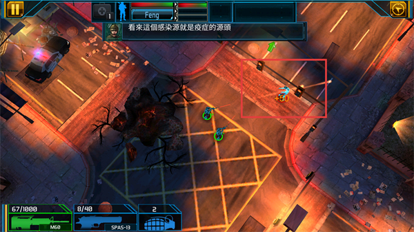 4、根據提示鎖定【感染源】目標,操控角色移動至目標區域,集中火力攻擊,推進關卡進程。