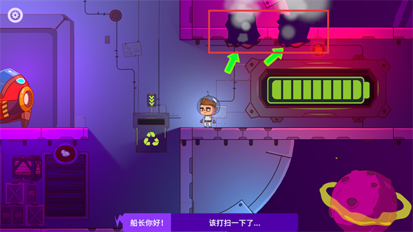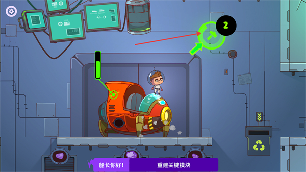3、按照【綠色箭頭】指向,修復船艙,完成場景清理任務,為后續行動鋪路。