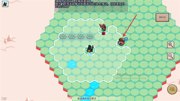 1、進入場景后,按提示操控角色靠近目標,與目標結成伙伴,同時留意周圍敵人的動向。